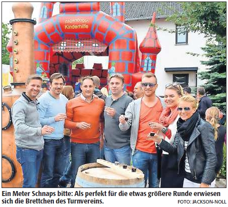 Als Programm für den Dorfnachwuchs gab es neben Fahrgeschäften, Jahrmarktsbuden und der von der Jungen Union gesponserten Hüpfburg auch das Kinderschminken unter der Regie des Kindergartenfördervereins, bei dem der Dorfnachwuchs teilweise Schlange stand. Ebenso wieder mit dabei war auch der traditionelle Schnapsstand des Turnvereins, wo sich vornehmlich die Herren der Schöpfung geistige Genüsse in Form von edlen Schnäpsen und Likören schmecken ließen.
